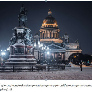 Обзорная экскурсия по городу. Вы полюбуетесь панорамой красавицы Невы, увидите великолепные ансамбли центральных площадей, проедете по центральным проспектам и улицам города. Все то, что привлекает гостей Санкт- Петербурга со всего мира предстанет Вашему вниманию: Казанской собор, Адмиралтейство, Сенатская пл., памятник «Медный Всадник», Зимний дворец, Дворцовый мост, Стрелка В.О. Здание Биржи, Ростральные колонны, Университетская набережная, Михайловский дворец, Мраморный дворец, Михайловский замок, Невский проспект и много–многое другое.